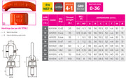 Made from G80 alloy steel with a orange painted finish, manufactured with an oval link, and available in metric thread sizes from 8mm to 36mm.